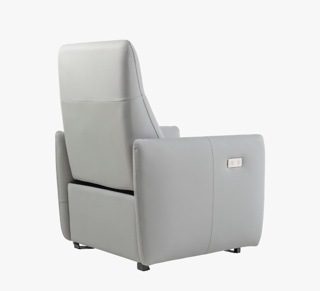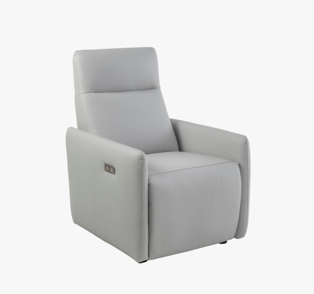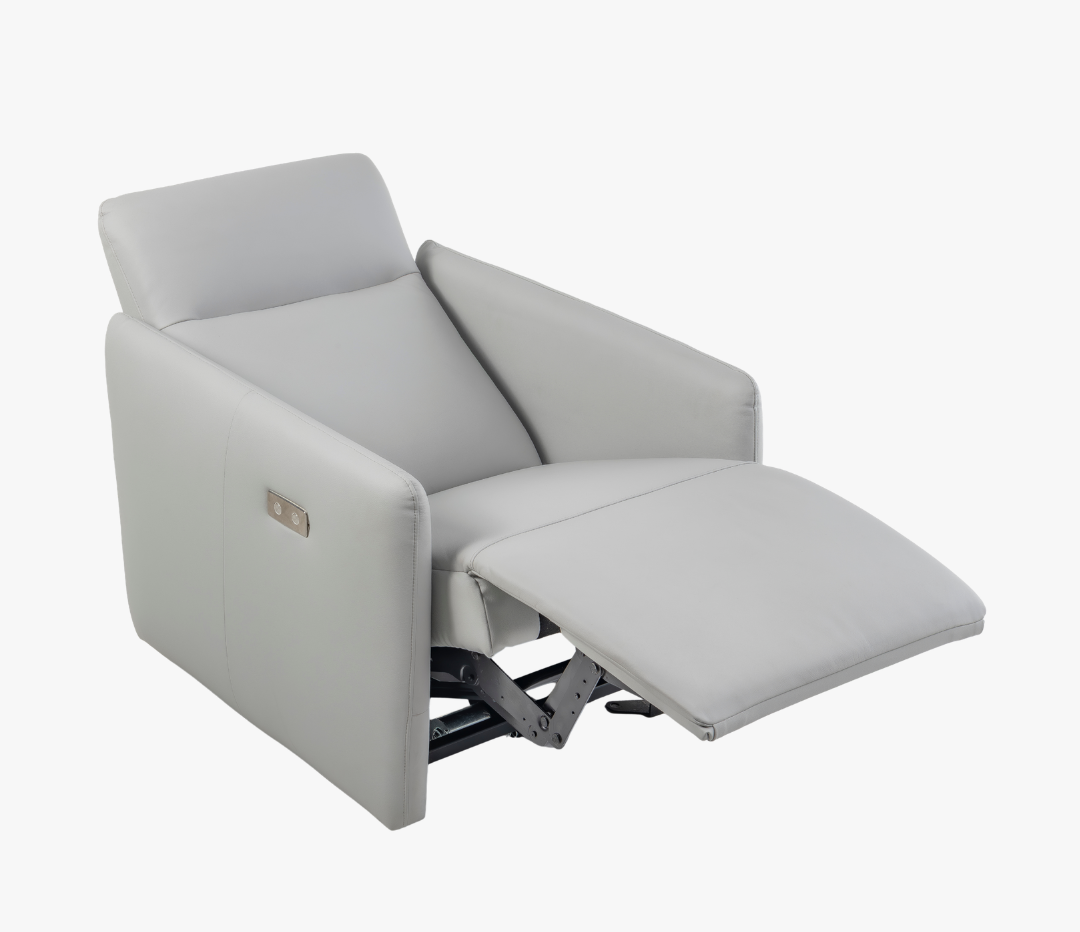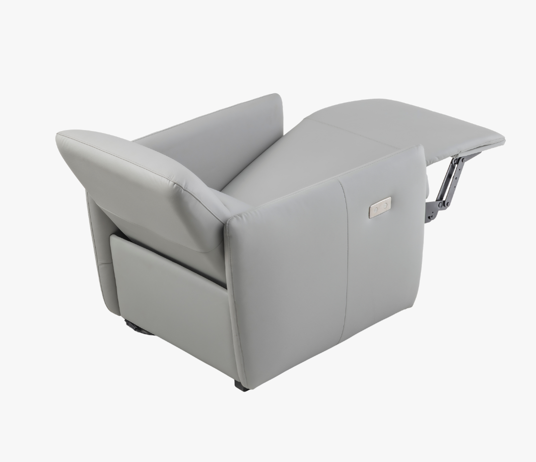 Poltrona automática, reclinável, chaise extensível, bivolt, sistema ZERO WALL.Revestimento em couro natural e courissimo (onde existe contato com o corpo couro natural, nas demais regiões do produto courissimo).