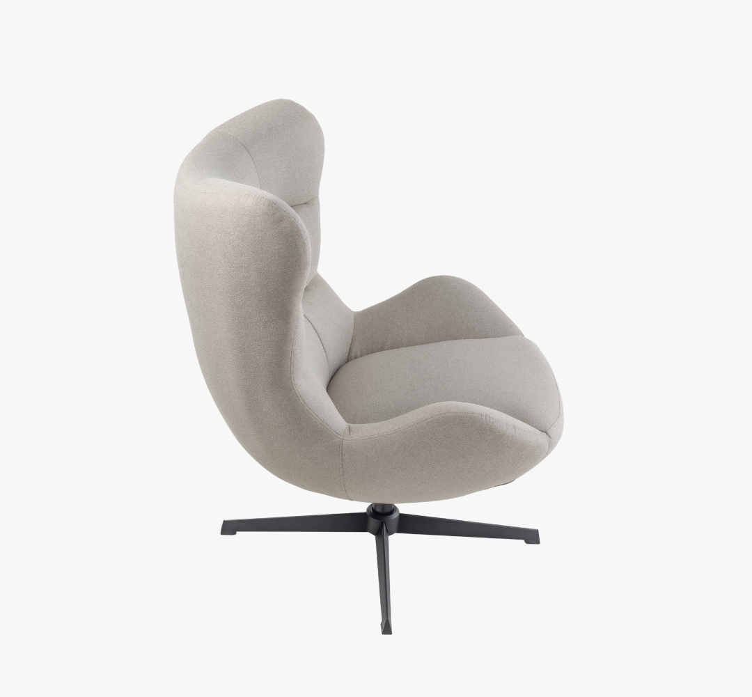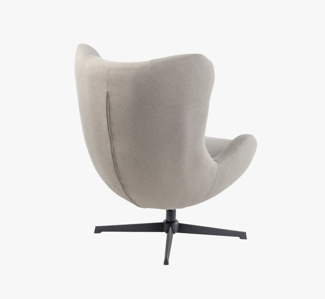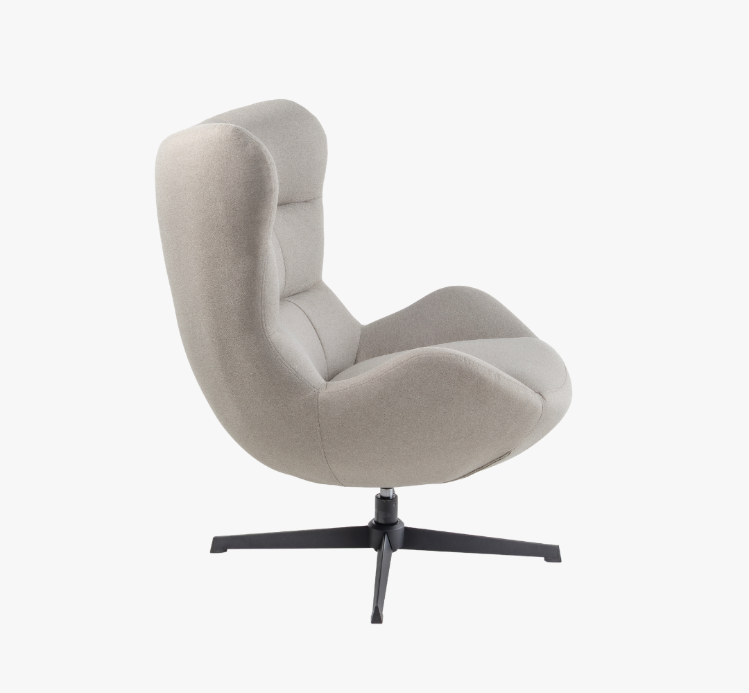 Poltrona giratória, base em metal cor preta fosca.